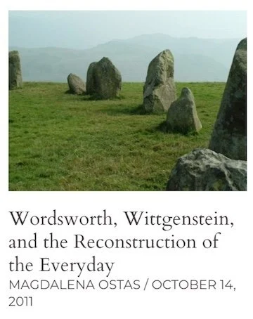 “Wordsworth, Wittgenstein, and the Reconstruction of the Everyday.” nonsite.org. Special Issue: “No Quarrels: Literature and Philosophy Today.” No. 3 (2011). You can read my article at nonsite.org
